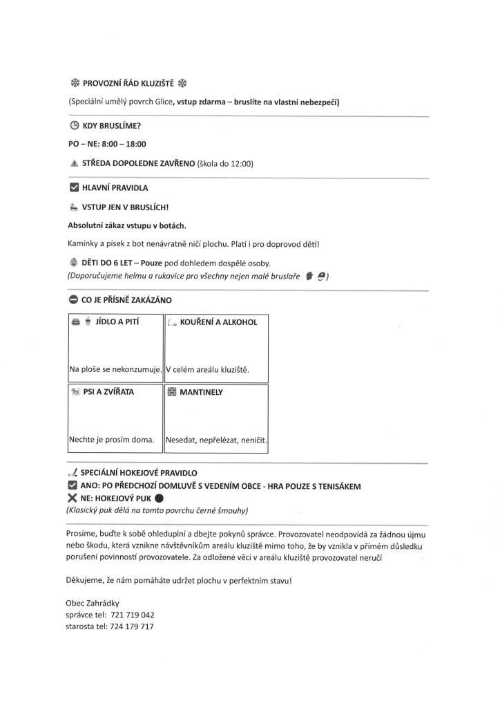 Obec pronajala od 19. 2. 2026 do 22. 3. 2026 kluziště s umělým povrchem. S provozním řádem se můžete seznámit v příloze.